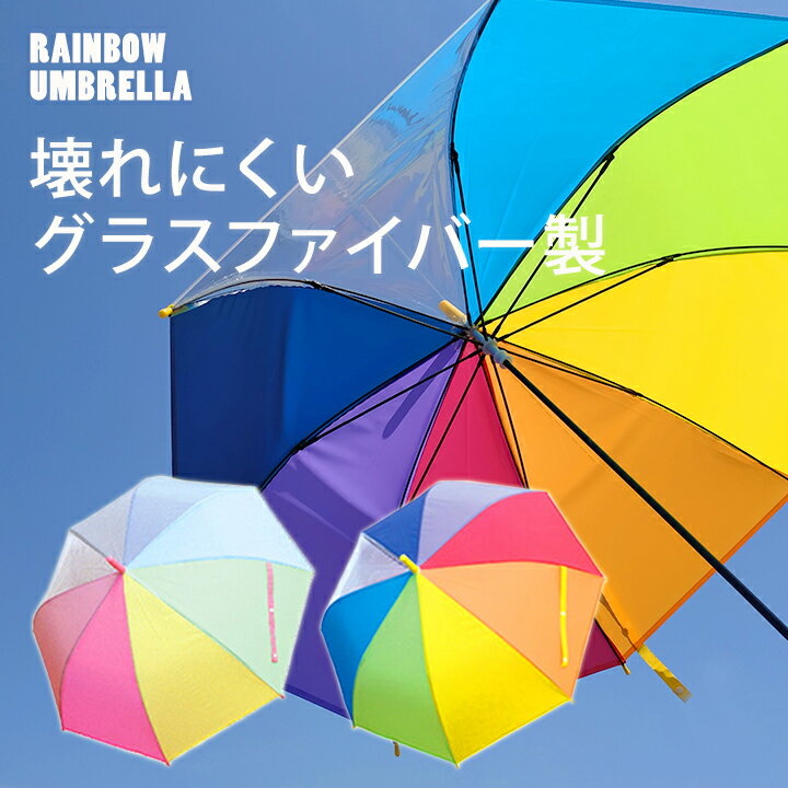 🌈レインボーアンブレラ キッズ・虹色な子供用傘♪女の子 男の子 小学生 透明 軽量 軽い おしゃれ グラスファイバー 手開き ジャンプ式 ワンタッチ 丈夫 名前 ビニール かわいい レインコートや長靴と かさ