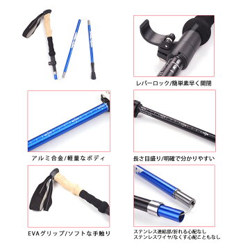 ◆2.【超軽量&耐久性】トレッキングポール本体は、アルミ合金製で超軽量かつ強度もしっかり確保。
