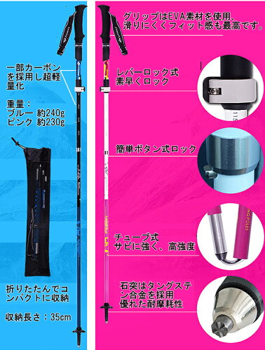 トレッキングポール 折りたたみ式 2本セット 超軽量 カーボン 登山 ストック アルミ製 キャリングバック付き
