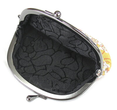 ポリエステル縮緬生地を使用した 人気の定番がま口です 内側にもこだわり 光沢のあるジャガード縮緬生地を使用 高級感があってギフトにもぴったりです内側はすべて黒のジャガードちりめん生地使用 光沢のある風合いで高級感抜群です! ※柄の出方には個体差がありますこと 予めご了承下さい。