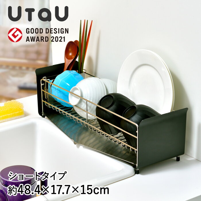 水切りラック スリム ショート UtaU | 水切りかご 横 ステンレス おしゃれ 食器 水切り シンク横 キッチン ラック コンパクト シンク 一人暮らし 水切りカゴ 水切りトレー シンクラック カトラリー 食器置き 流し台 水が流れる 水きり 水切り籠 ウタウ シンプル 洗い 新生活