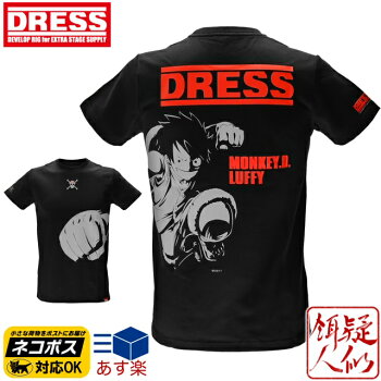 楽天最安値挑戦中☆在庫限り50%オフ[DRESS(ドレス)]ワンピースコラボTシャツ ルフィ 半袖 [ブラック] [サイズ:S〜XXXXL] 5.6オンスコットン100% ティーシャツ メンズ Men's 釣り ONE PIECE
