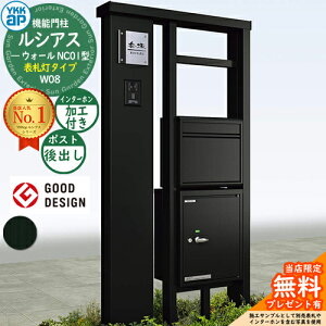門柱 ポスト 機能門柱 ルシアスウォール NC01型 W08 表札灯タイプ 本体:アルミカラー 後出し:ポストN2型 インターホン加工付き ポスティモ宅配ボックス1型 YKKap UYA-NC01 郵便ポスト 郵便受け 機能ポール 一戸建て用 屋外 一体型 照明 LED