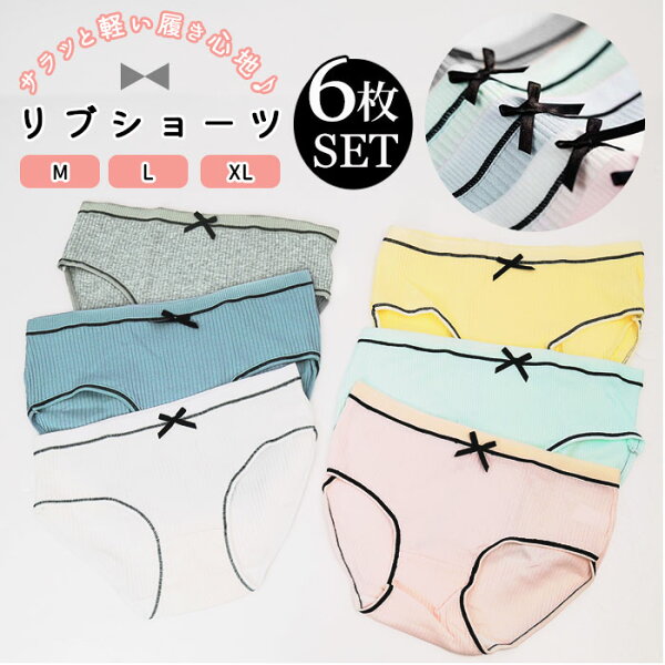 TOP > ショーツ レディース 6枚 セット 好評 綿 コットン 深ばき リブショーツ 下着 レディースショーツ おしゃれ ジュニア パンツ 女性用 インナー アンダーウェア かわいい 大人 学生 スタンダード