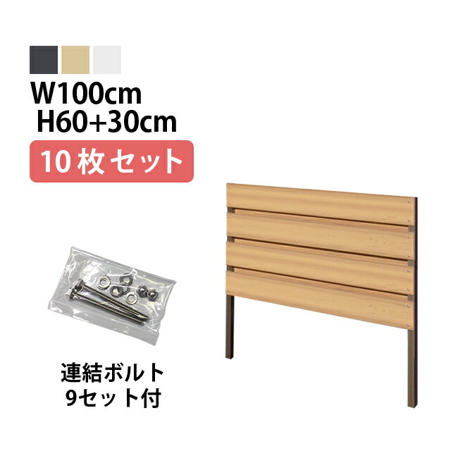 目隠しフェンス 【10枚セット 連結ボルト付】フルブラインド型【Short】 埋込タイプ 標準色 [幅100cm×高さ60cm+埋込30cm] 樹脂製 ガーデン DIY おしゃれ 長持ち