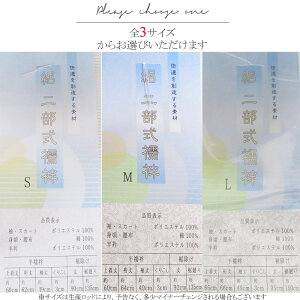 Sサイズ: 半襦袢 上着丈60cm、裄62cm、袖丈49cm 裾よけ 丈90cm、裾廻り135cm Mサイズ: 半襦袢 上着丈60cm、裄64cm、袖丈49cm 裾よけ 丈92cm、裾廻り135cm Lサイズ: 半襦袢 上着丈65cm 裄66cm 袖丈49cm 裾よけ 丈93cm、裾廻り150cm ◆素材 袖 / ポリエステル100% 身頃・腰布 / 綿100% 半衿 / ポリエステル100% ◆メール便について 1通につき1点まで可 メール便を選択された場合は折りたたんで発送いたします。
