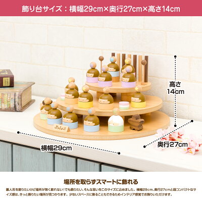 雛人形 木製 コンパクト おひなさま かわいい ひな人形 小さい prefer MOKU おひなさま15人 kocoka 十五人飾り おしゃれ
