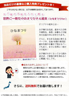 飾った際のサイズ 間口29.7×奥行20.5×高さ17cm 商品名商品番号 木製 プーカのひなにんぎょう BASIC 2.0 ベーシック 三段五人飾り 毛せん付きHNTK-PUCAHINA (2022年モデル) 飾った際のサイズ 間口29.7×奥行20.5×高さ17cm 備考 ●名前入りオリジナル絵本 お子様のお名前、産まれた日時や病院名、身長・体重などが絵本のお話の中に印字されます。