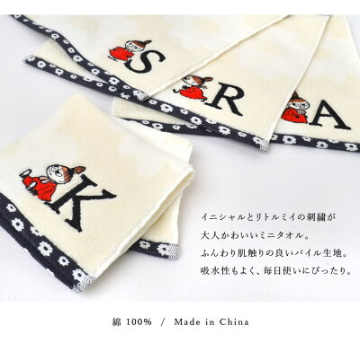 ハンドタオル イニシャル かわいい タオルハンカチ ムーミン ミイ ミィ リトルミイ MOOMIN ミニタオル ハンカチ おしゃれ シンプル 刺繍 レディース ムーミングッズ 北欧 花柄 タオル 綿 女性 子供 キャラクター プレゼント お返し 通勤 A K M R S Y 母の日 花以外 実用的