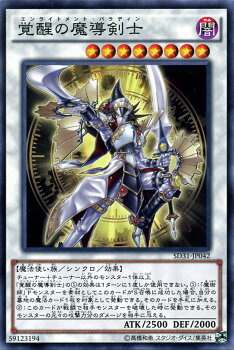 遊戯王 ストラクチャー デッキ ペンデュラム・エボリューション(SD31)アーク・ファイブ 収録 ■カード名:覚醒の魔導剣士 【シンクロ・効果モンスター】ノーマル ■星8/闇属性/魔法使い族/攻:2500/守:2000/ ■チューナー+チューナー以外のモンスター1体以上 「覚醒の魔導剣士」の(1)の効果は1ターンに1度しか使用できない。
