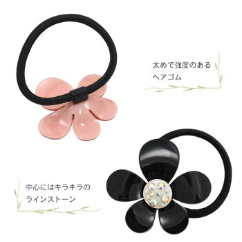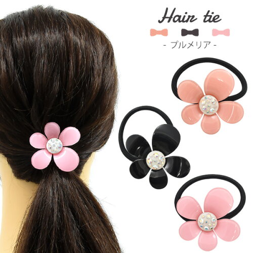 メール便送料無料【 ヘアゴム プルメリア 】 ラインストーン 大人 立体 髪ゴム 髪飾り ヘアアクセサリー レディース 女性 ロング 上品 かわいい おしゃれ ビジネス フォーマル デイリー オフィス ヘアアレンジ シンプル 大人っぽい ぷっくり シンプル