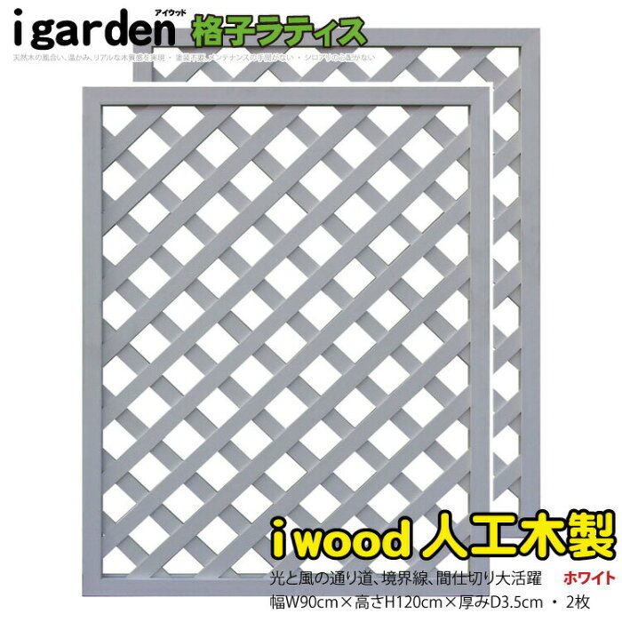 格子ラティス 人工木製 H120cm×W90cm [2枚セット] ホワイト◇ 1290s2w アイウッド格子ラティス1290 X1290W| 人工木 ラチス 格子タイプ フェンス 仕切り 衝立 塀 壁 柵 囲い エクステリア メッシュ 目隠し 日よけ