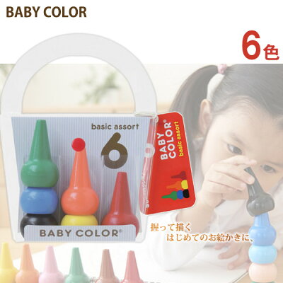 ベビーコロール ベーシック クレヨン 6色セット (Baby Color Basic Assort 6C) あおぞら (AOZORA) 握って描くはじめてのお絵描きに。